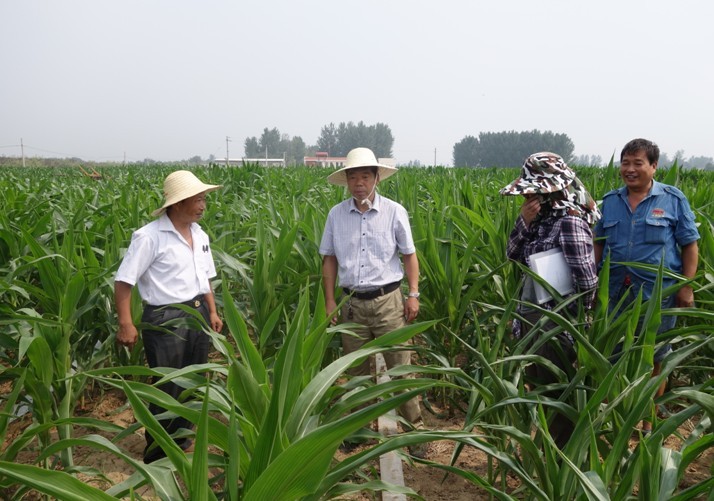 为确保省2014年度财政预算项目“玉米新品种郑单2098高效简化栽培技术示范”在长葛市的顺利实施, 7月25日,粮作所玉米专家王振华研究员、张新研究员、张前进副研究员等一行与长葛市农科所的科技人员一起,深入到长葛市古桥乡项目实施基地督促抗旱工作。